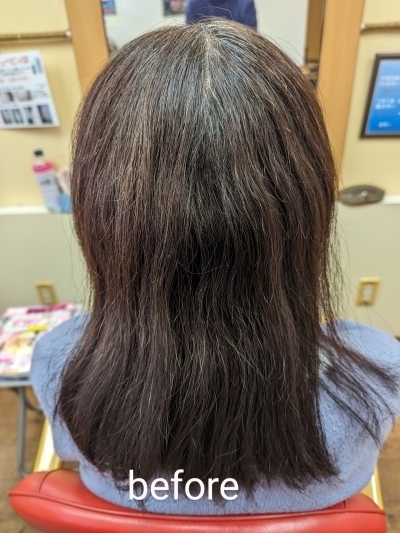 カラー施術後のシャンプー剤もケラチンタンパク質&髪の結合強化剤を配合の特別な物を使います。
